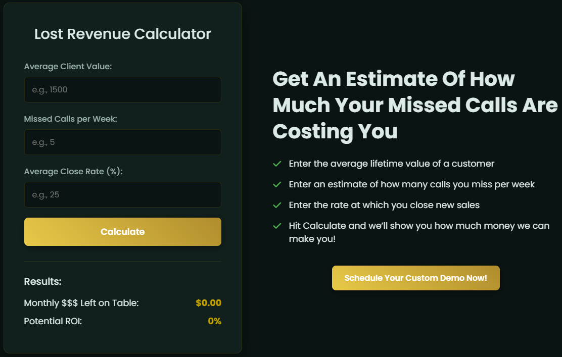 Not sure how much money you’re losing with messy systems or inconsistent follow up? Run the numbers through our Lost Revenue Calculator on our site and see it in black and white.
